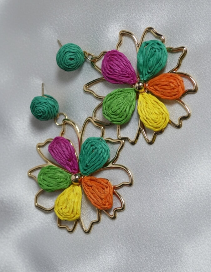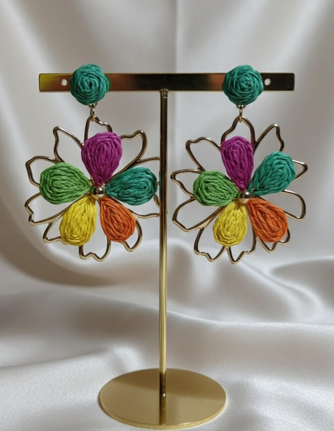 Apportez une touche de caractère et d’exotisme à votre look avec les boucles d’oreilles Florales. Entièrement faites à la main, les boucles d’Oreilles Florales marient la texture organique de la toile de jute à un design géométrique unique. Un accessoire qui reste léger à porter.
