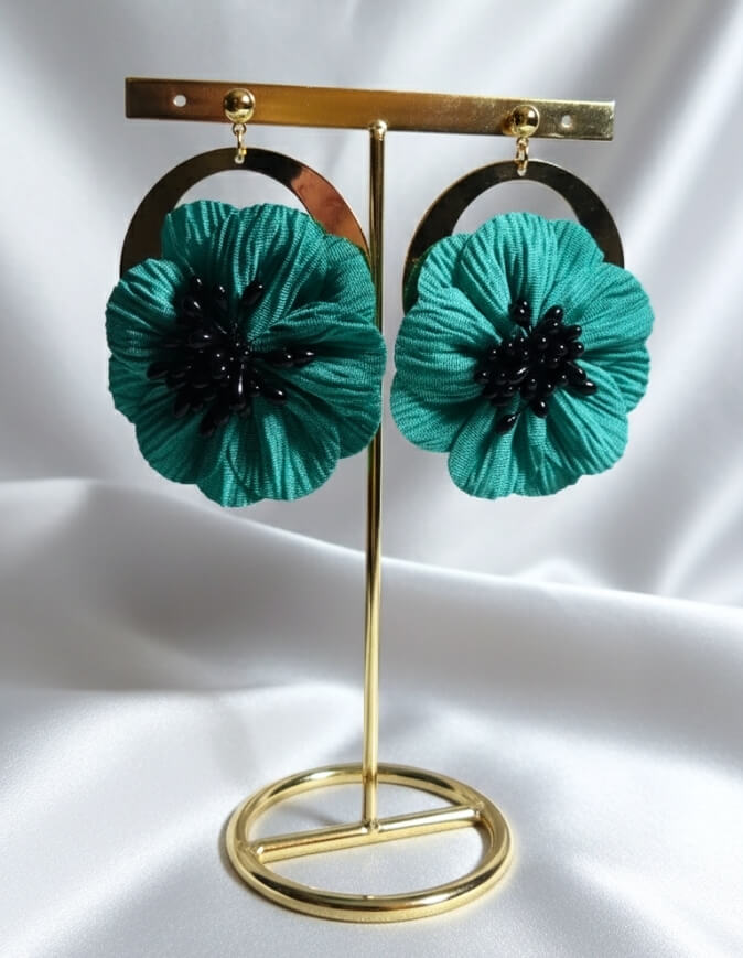 Apportez une touche de caractère et d’exotisme à votre look avec les boucles d’oreilles Lagon. Entièrement faites à la main, les boucles d’Oreilles Lagon utilise la fluidité du tissu plissé pour créer une fleur généreuse et aérienne, évoquant la beauté d’une fleur tropicale.. Un accessoire qui reste léger à porter.