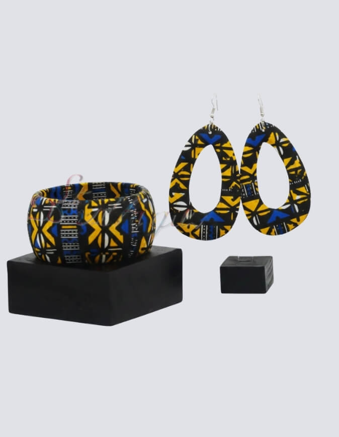 Faites rayonner votre allure avec cet ensemble artisanal exclusif, véritable hommage au patrimoine textile ouest africain. Alliant la noblesse du bois brut à l’énergie des motifs Bogolan, cette parure est l’accessoire indispensable pour celles qui souhaitent conjuguer modernité et racines culturelles.