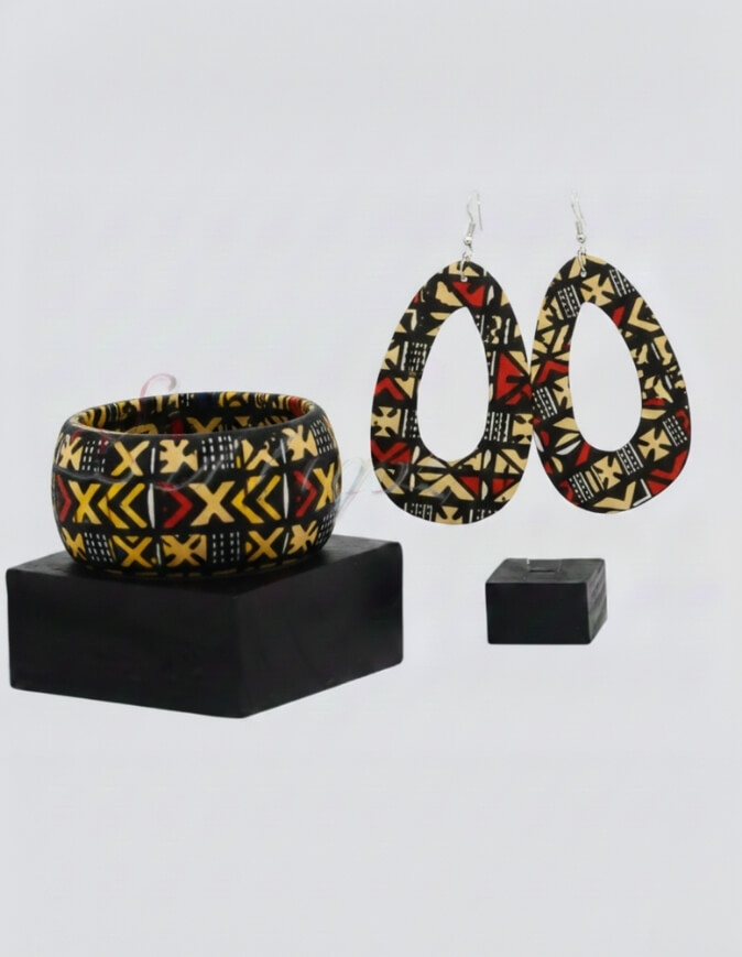 Faites rayonner votre allure avec cet ensemble artisanal exclusif, véritable hommage au patrimoine textile ouest africain. Alliant la noblesse du bois brut à l’énergie des motifs Bogolan, cette parure est l’accessoire indispensable pour celles qui souhaitent conjuguer modernité et racines culturelles.